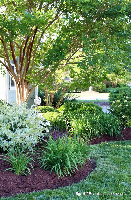 花园绿化肯定不只是种树,树下应该还会搭配其它一些花草灌木,这样才显得有层次。