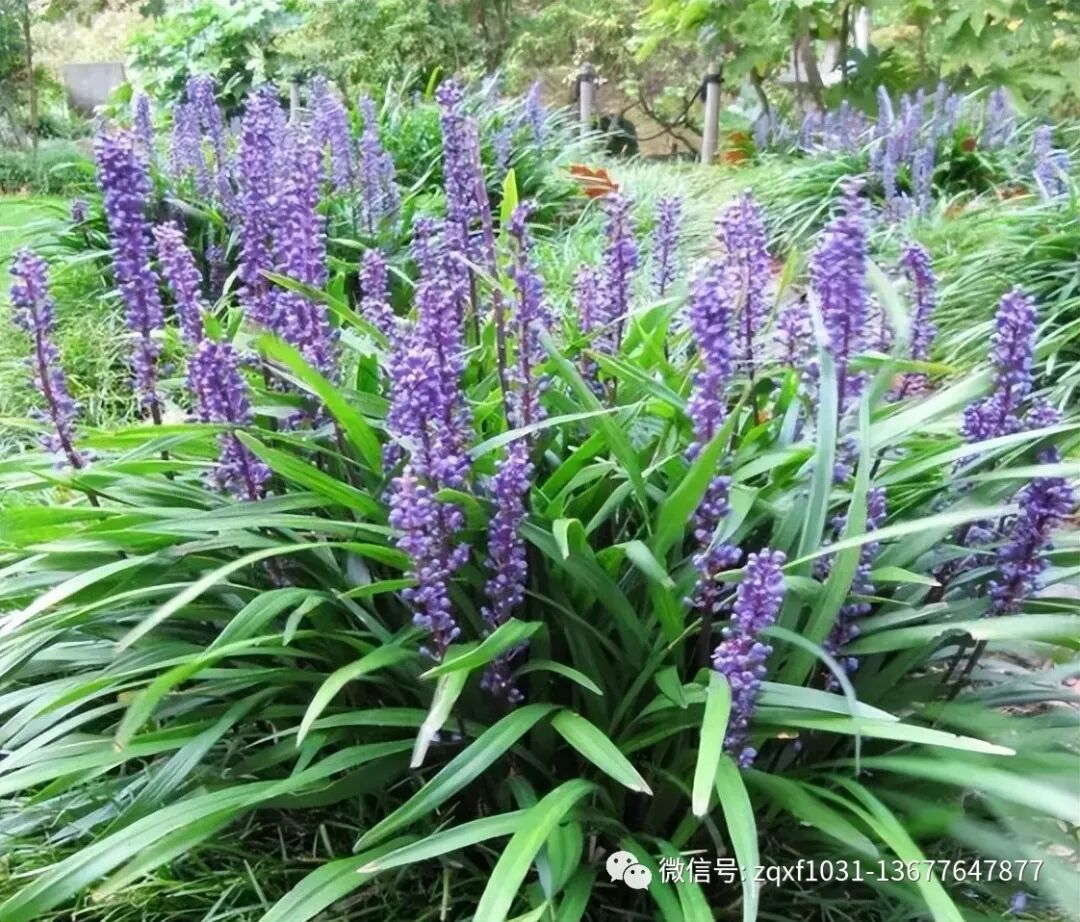 其中阔叶山麦冬相对来说开花比较好看,单株观赏效果比较好,适应能力强,很适合庭院边角部位种植。