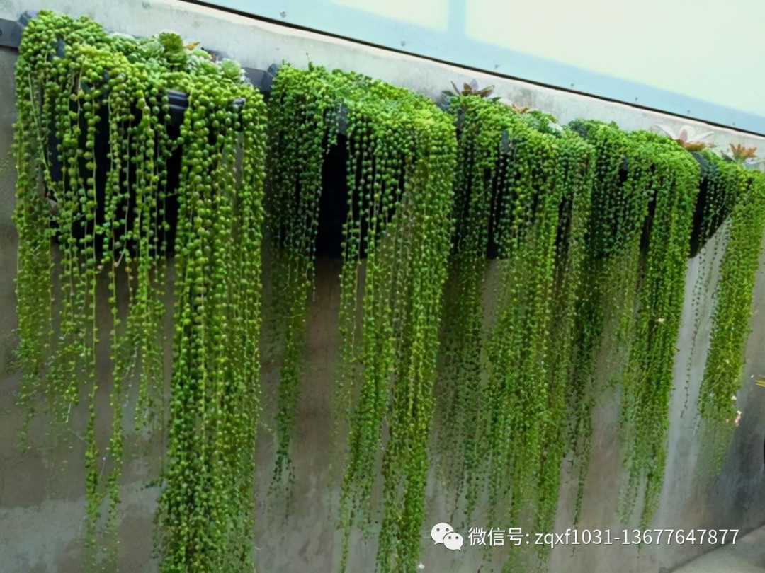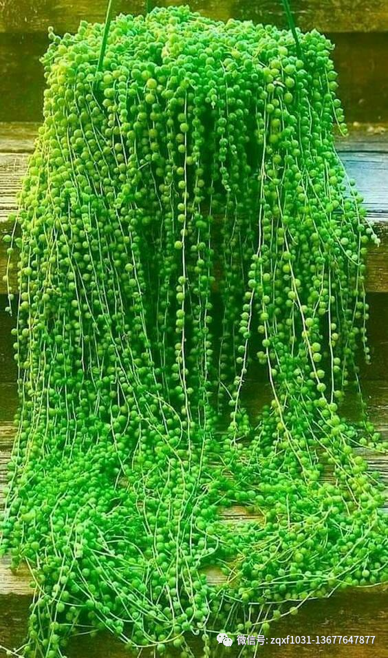 一种多肉植物,原产南非,叶子呈肉质圆珠状,深绿色,枝茎悬垂或匍匐生长,圆珠状的叶片生长于悬垂的枝条之上,就像一串串的佛珠。