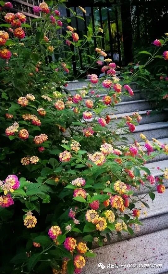 五色梅又叫马缨丹,花期长,可全年开花,花色丰富,有红色,橙色,黄色,紫色,粉色等多种颜色,是一种非常好看的开花植物。