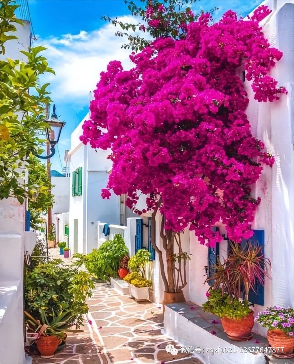 在花园中,三角梅常用作灌木球和爬藤植物,跟地被植物搭配在一起使用,光照越足,开花越多。