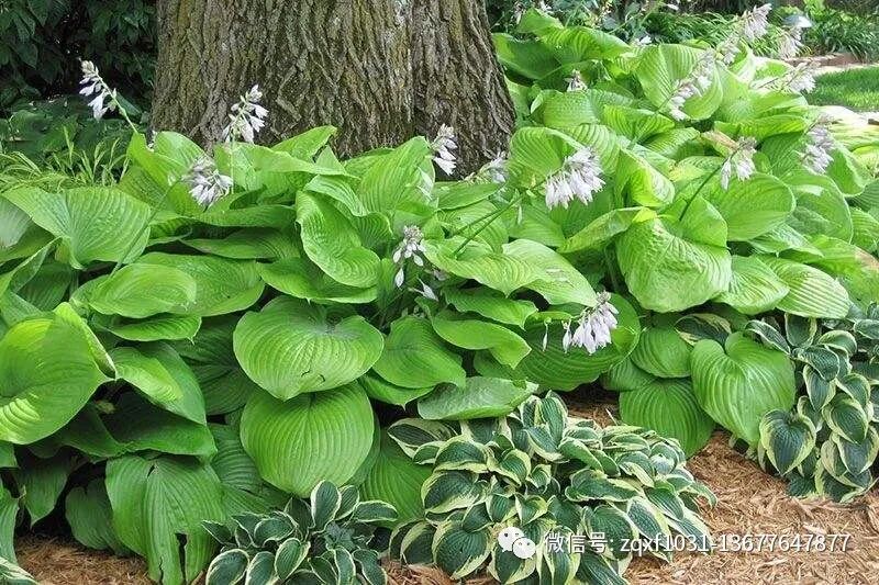 玉簪同样也是一种耐阴,耐寒的多年生草本植物,品种很多,它的高度较绣球矮一些,比较适合作为光照不好花园的低矮地被植物。