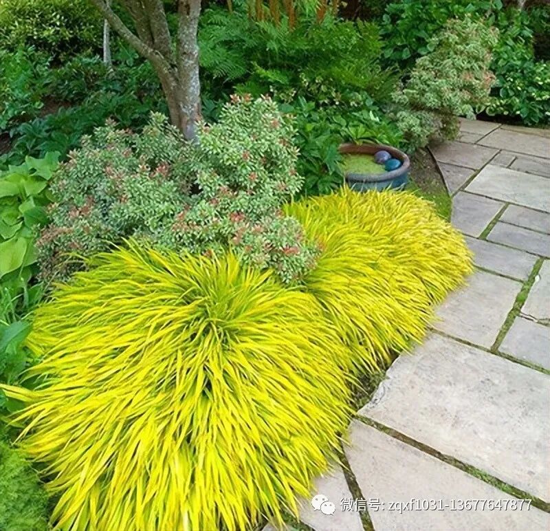 箱根草是产自日本的一种多年生草本植物,耐阴,耐寒,适应能力强,姿态蓬松,是一种很有观赏价值的草本植物,非常适合作为光照不足花园的地被收边植物。