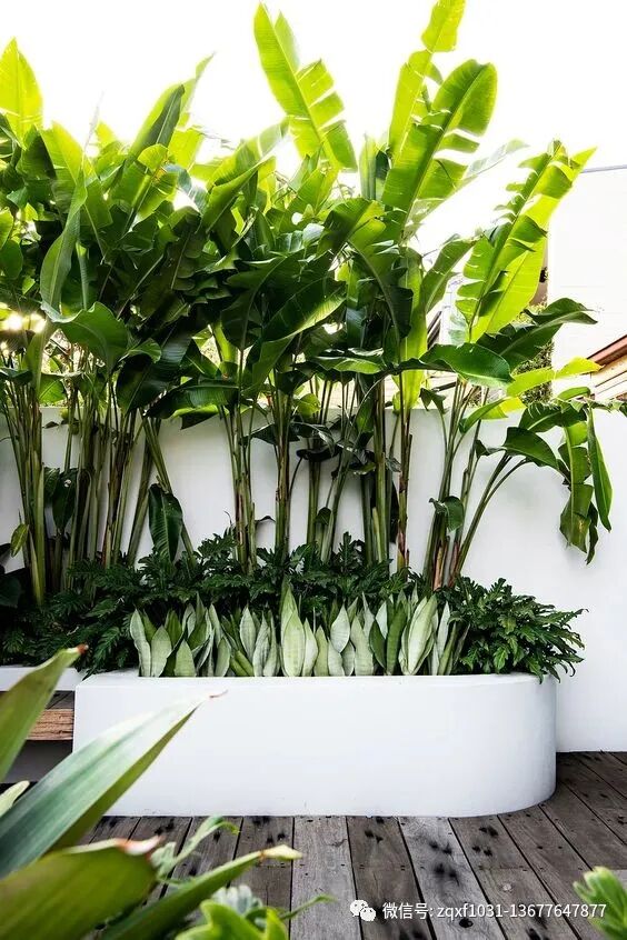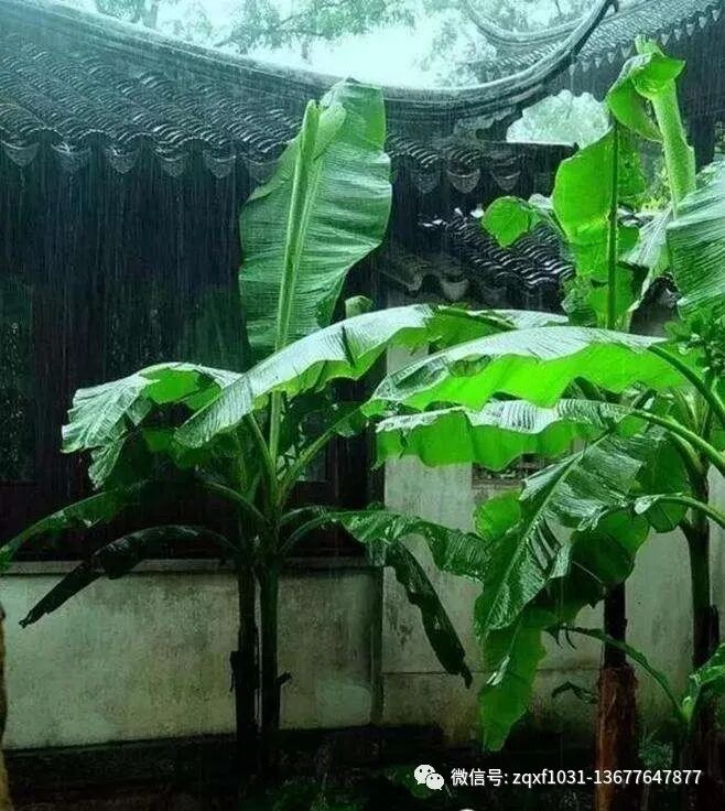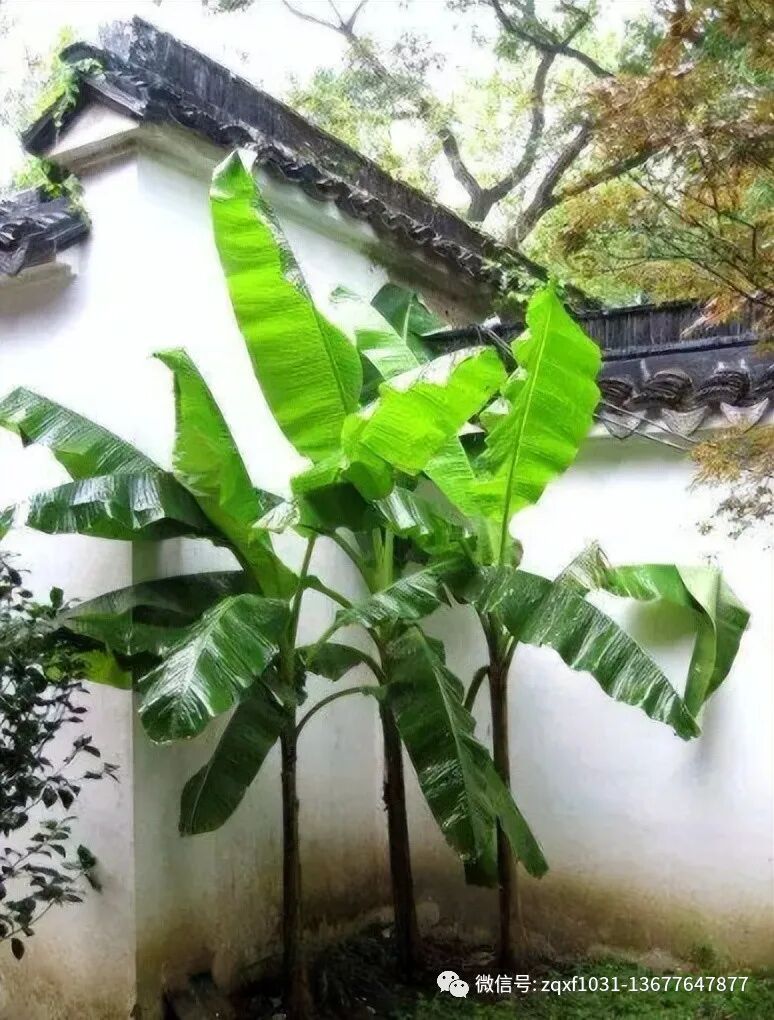 芭蕉自古就是备受文人喜爱的一种庭院植物,人们喜欢把它种在窗前,墙角和墙边,深绿宽大的叶片自然舒展,跟粉白的围墙搭配在一起,很有画意。