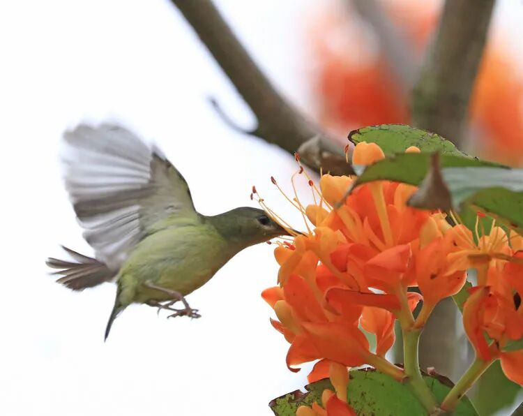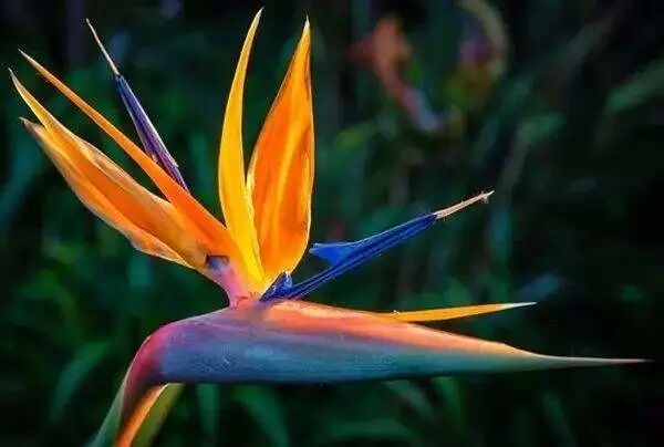 天堂鸟是旅人蕉科植物,是典型的鸟媒花,依靠南非织雀传播花粉,这种花朵长的特别像一只颜色绚丽的鸟,蓝色像眼睛一样的东西是花瓣,明黄色漂亮头冠其实是花萼。它通过模拟鸟类形态来吸引鸟类。花蜜储藏在花瓣深处,只有当吸食花蜜的鸟类吃花蜜时,它们的爪子会紧紧抓住天堂鸟蓝色的花瓣,用力将花瓣张开,吸食到花蜜的那一刻,里面的花粉也会喷涌而出,喷在织布雀的脚上。
