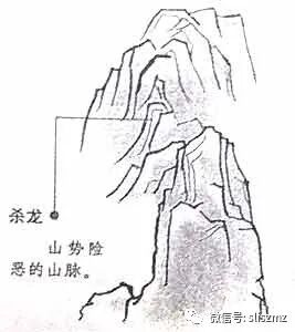 杀龙,是对那些本身带有杀气,而未经脱卸的龙脉的称谓。这种龙脉自从离开祖山以来,山势陡峭险峻,山形丑恶粗雄,石骨暴露于外,伸出的枝脚也形势尖利,山形破碎歪斜,臃肿硬直,要么完全没有跌断过峡,要么虽然经过了脱卸,但丑恶的形势丝毫不改,观之则而毛骨悚然,走在上面则心惊肉跳。凡此种种,都叫做杀气凶恶外露,叫做杀龙,最为凶恶。如果错误地葬在这里,则预示着家族中将出现凶狠强横,欺凌弱小的人,有嗜杀、诛夷、惨灭的应验。