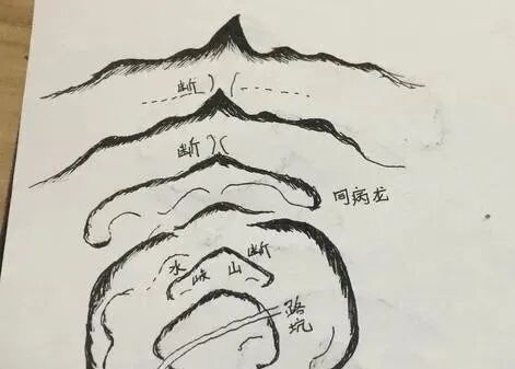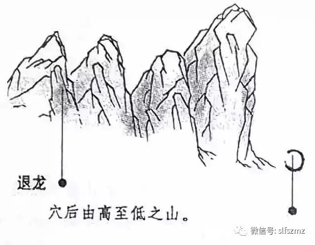 退龙,是对那些耸起星辰高低次序颠倒,伸出的枝脚不合乎顺序,而自身行度呈退后之态的龙脉的称谓。《入式歌》说:“退是渐消条。”大致来说,这种龙脉自从离开祖山以来,本来就没有禀受正气,只是勉强行度,因此初始矮小,终了高大,龙脉低矮穴场高耸,如同人在踩踏碓,船只上滩搁浅一样,高低上下失去了等次。这种格局的龙脉最为凶险,纵使有形式上的穴场,也是兆示不吉的穴场,预示着运气一发即退,没有多少力量。