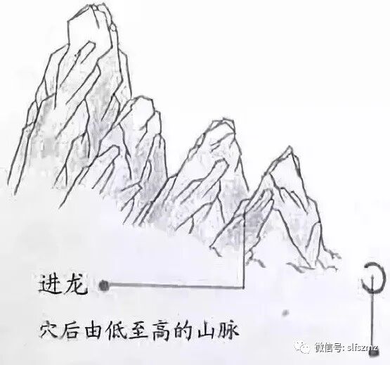 进龙,是对那些迭次耸起星辰,伸出的枝脚也形势均匀,自身行度有序的龙脉的称谓。《入式歌》云:“进是龙身节节高。”大致来说,这种龙脉自从离开祖山以来,精神俊异,高低起伏,次序不乱。龙脉自粗剥换成细,由老转抽出嫩枝,如同凤凰看到仁德的光辉而飞下,鸿雁踏水而奋飞一样,行动有渐进的过程。这种格局的龙脉最为吉祥,如果融结成穴场,预示着家族成员累世才华出众,富贵双全,子孙众多,满门朱紫,福运绵长,学业、品德不断进步。