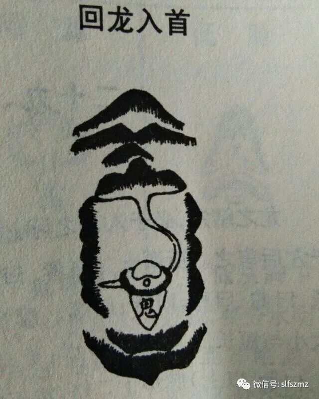 龙脉入首的格式原有五种,分别是:横,直,回,飞,潜。其实还有另外一种格式,叫闪龙入首。
