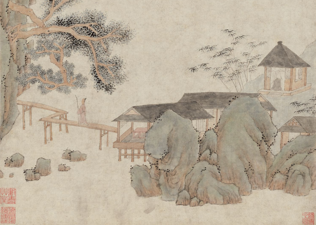 清 孙逸《溪桥觅句图》(局部)