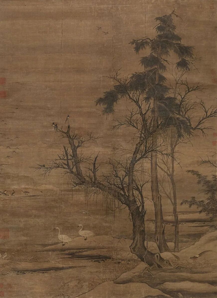 瘐信写枯树,虽为哀伤自己羁旅北方,如同大树被连根拔起,被移植到异域环境中而枯萎凋零,但他的视野却很辽阔,从以树喻己转向对历史和空间的观照。树比人活得长久,树犹如此,人何以堪?最终都会同归于寂灭,剩下的恐怕也就是只是个名字,而这就是所谓“名垂青史”,岂不悲哉!