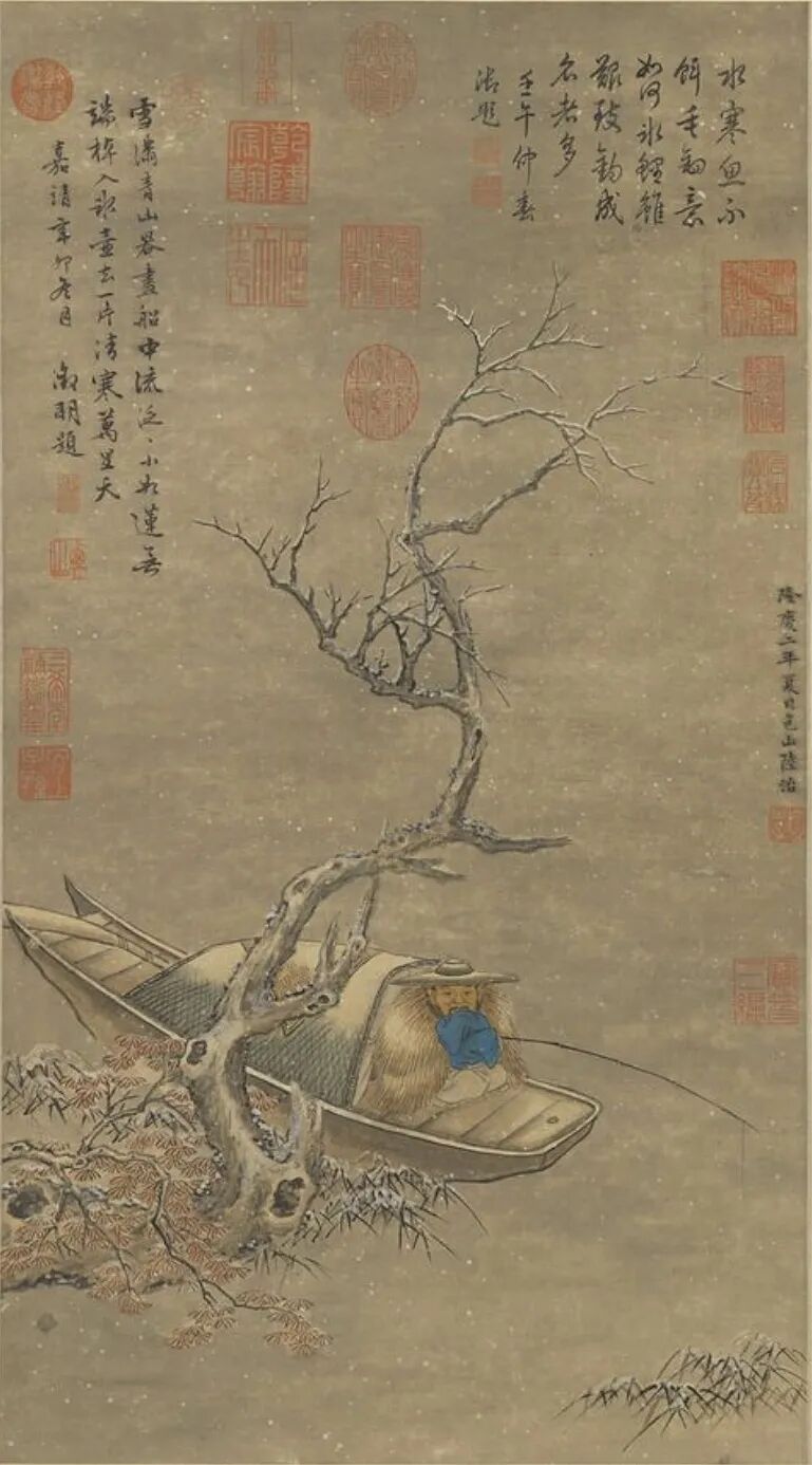 《江雪》的世界,雪铺开的是无边的冷寂。假如没有独钓寒江的渔翁,那就成了死寂,那便不成其为诗。而渔翁作为远景,只是一个象征。你看不见他的面容,他也不发出任何声音,没有任何行动。“渔父”的形象,自先秦以来即象征着避世高人。坐在无边的寂静中,他的“独钓”,也是其钓莫钓。