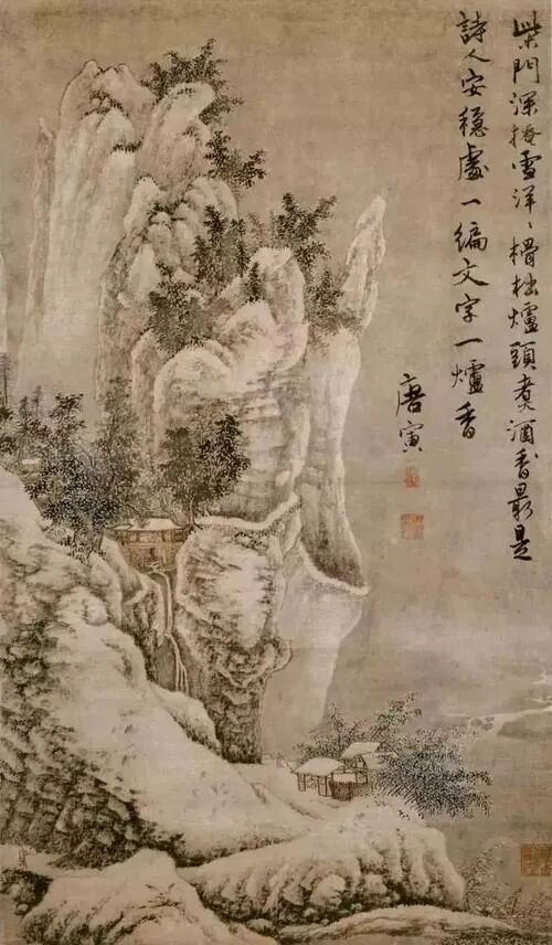 唐寅《柴门掩雪图》