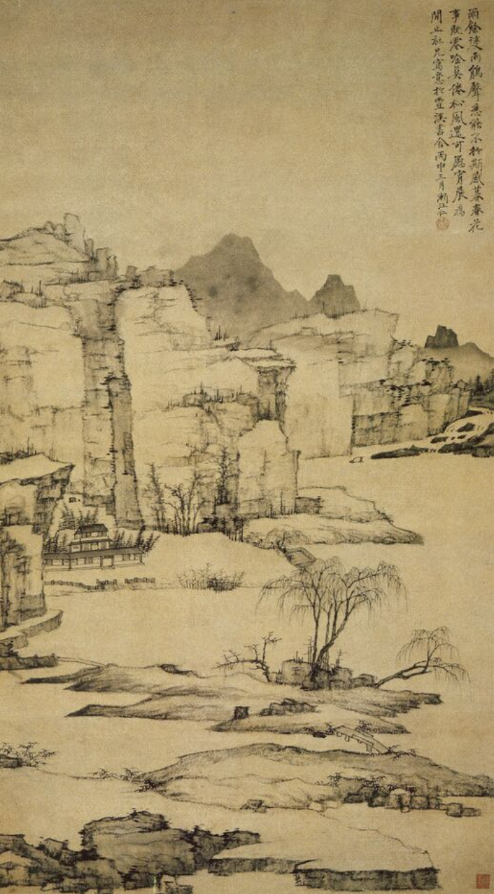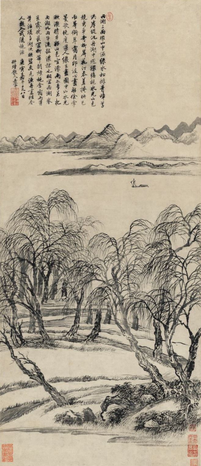 弘仁(清)《 雨余柳色图》