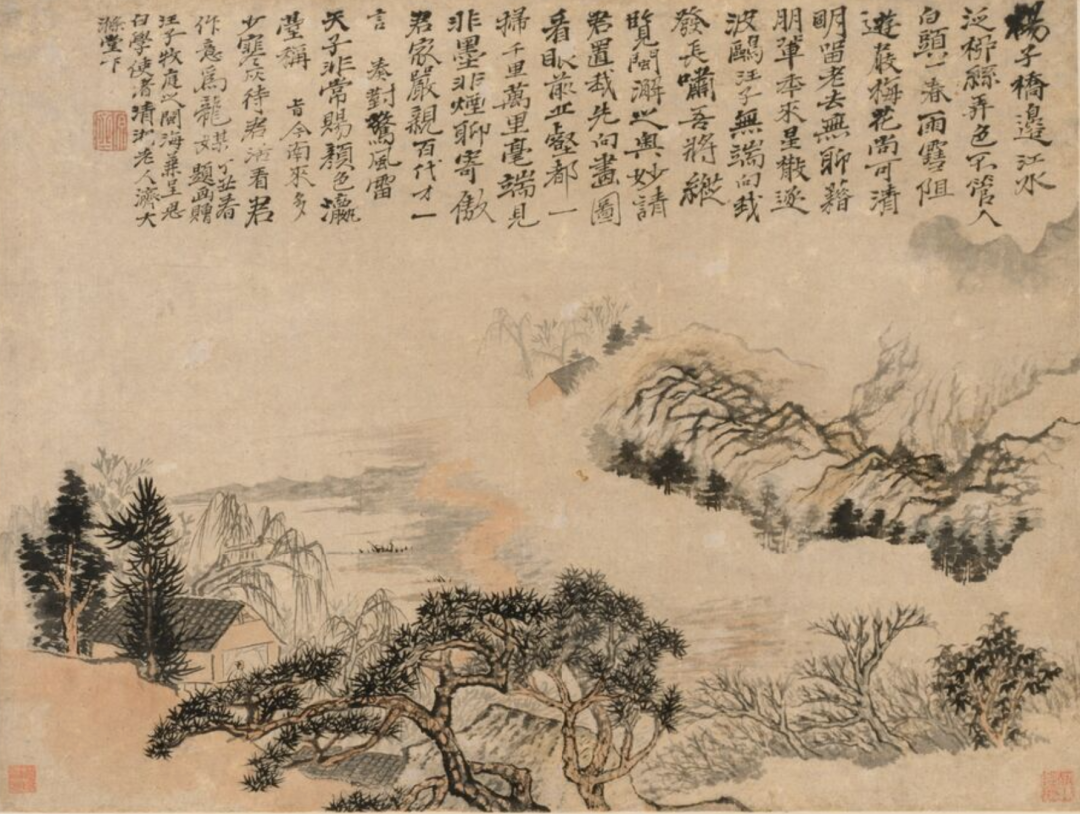 回到这首词。“红袖女郎”,江乡村女或穿着红衣,或并非如此,古典文学中多以红袖代指美人。“游南浦,笑倚春风相对语”,结句一幕似是远景,有透视效果,颇饶余思。