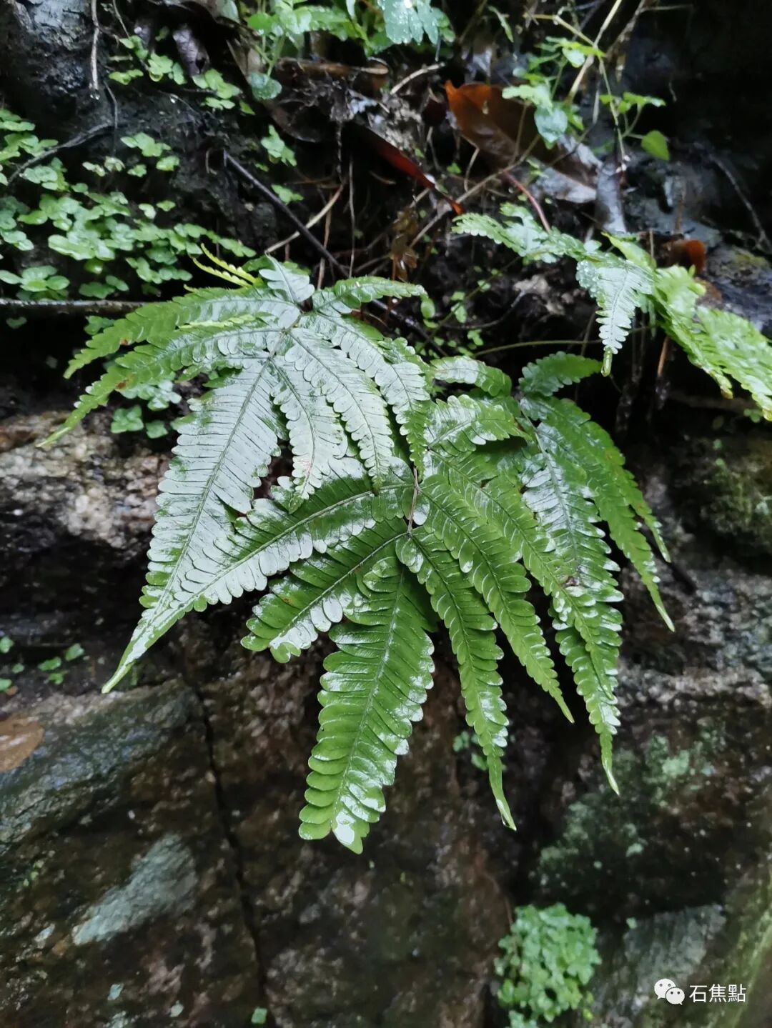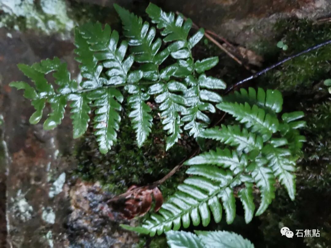 植株高可达1米。根状茎长而横走,密被锈黄色柔毛,以后逐渐脱落。叶远生;柄长20-80厘米,基部粗3-6毫米,褐棕色或棕禾秆色,略有光泽,光滑,上面有浅纵沟1条;叶片阔三角形或长圆三角形,长30-60厘米,宽20-45厘米,先端渐尖,基部圆楔形,三回羽状;羽片4-6对,对生或近对生,斜展,基部一对最大(向上几对略变小)。叶脉稠密,仅下面明显。叶干后近革质或革质,暗绿色,上面无毛,下面在裂片主脉上多少被棕色或灰白色的疏毛或近无毛。