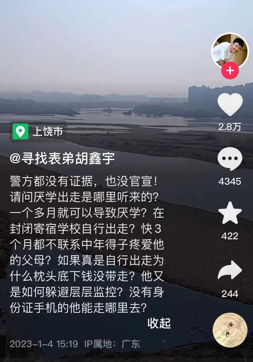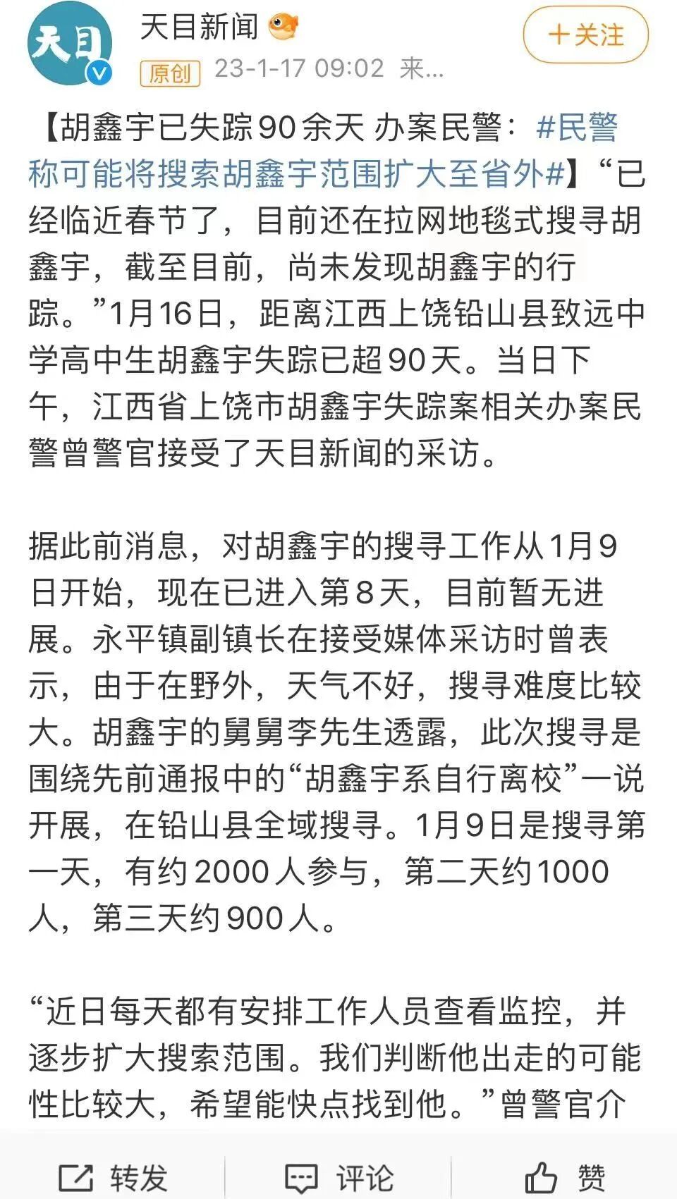 该报道一出,网友一片哗然。不少网友认为警方不遗余力追寻胡鑫宇的下落,此举值得点赞,但这追查的方向是否应该变通一下?