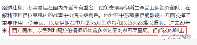 西方国家针对这位伊朗少将苏莱曼尼的刺杀行动不是一天两天了,而是过去20年都在尝试着对其刺杀。