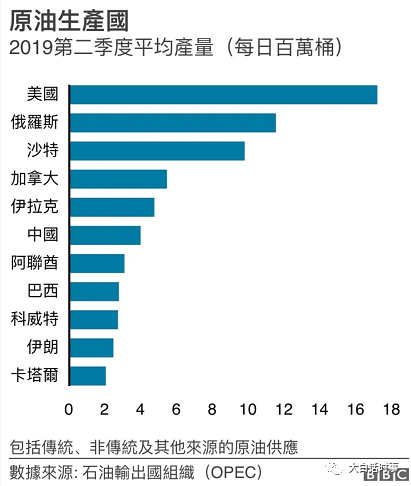 2019年第二季度的是有产量看,美国已经是第一大石油出产国,紧随其后的是俄罗斯跟沙特。
