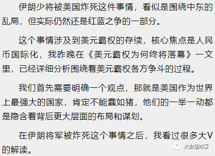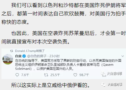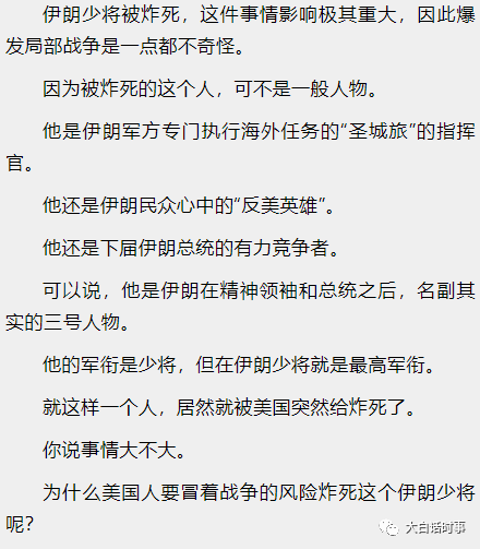 比如,有的大V,甚至想当然的认为,特不靠谱有可能在不知道这位伊朗将军地位的情况下,发动这次袭击。