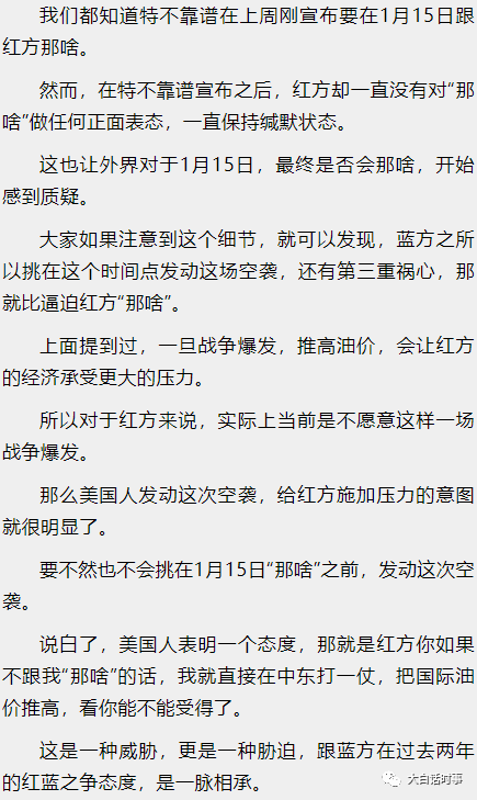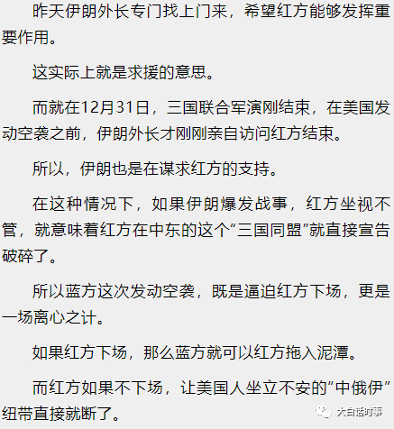 从上面三个层面的分析,大家也应该很清楚,这次美国所发动的空袭,是报复、也是处心积虑、谋划已久,并且特意挑在这个时间点立威用的。