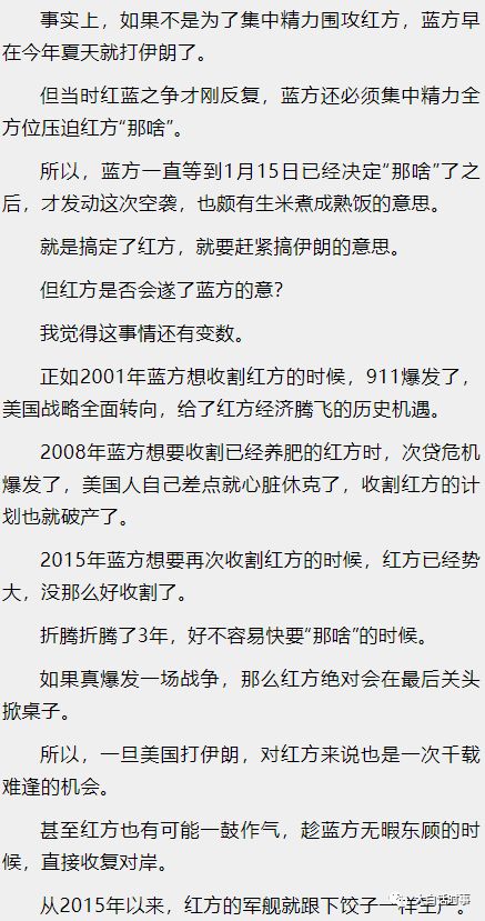 所以,实际上美国发动这次空袭,是项庄舞剑意在沛公,这个沛公就是针对红方。