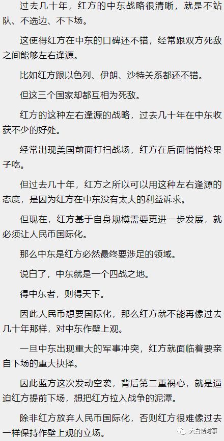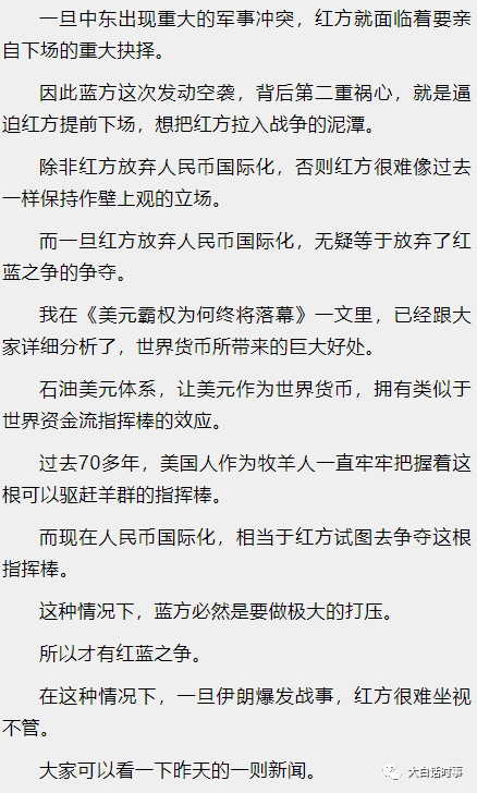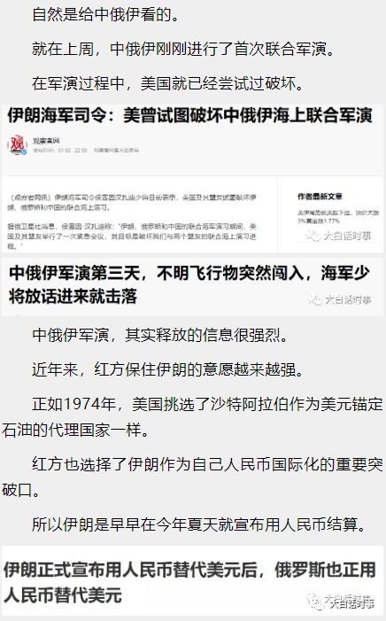 而由于红方需要通过伊朗来实现“人民币-石油”锚定,这是人民币国际化的关键环节。