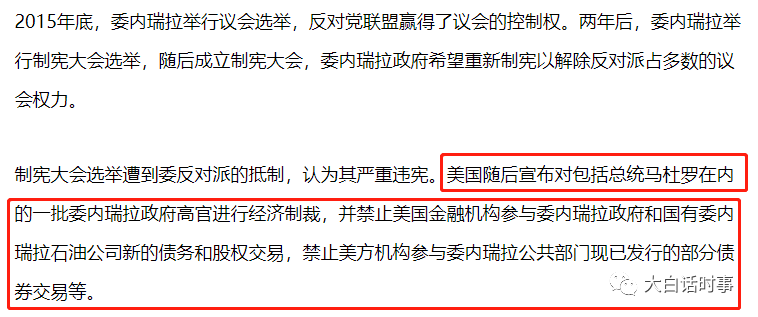 委内瑞拉坐拥庞大石油储量,却日子过得如此落魄,当然不仅仅只是因为油价暴跌,更主要原因还在于美国的制裁。