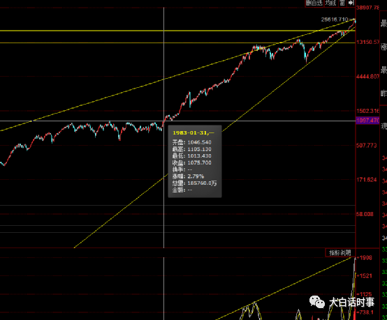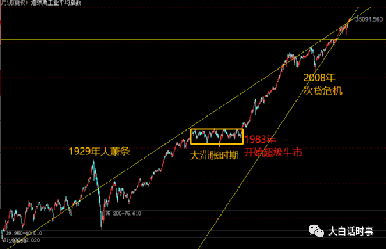 美国股市是1983年突破10年横盘区间,开始真正走牛。