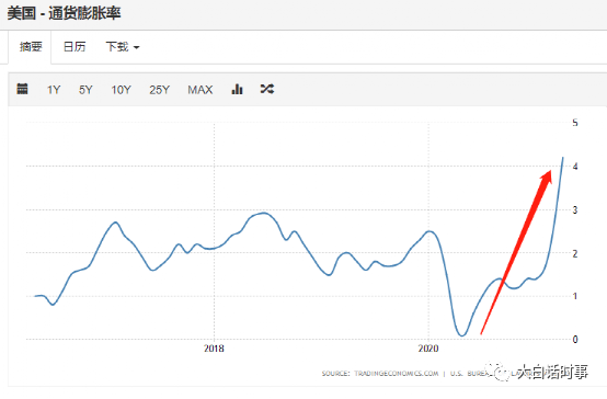 美国劳工部在5月12日公布一系列数据,其中美国4月份CPI物价指数同比增长4.2%,创2008年9月以来最大同比增幅。