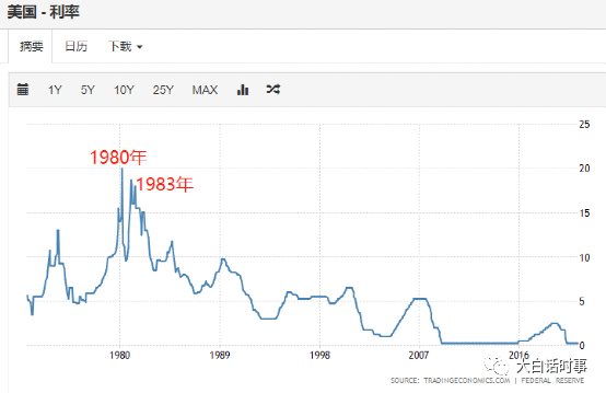这里要说明一下,这也跟美联储在1980年一口气加息到20%利率后,从1983年开始持续降息有关。