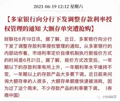 客观来说,这则消息是真的,一年期以上的大额存单利率确实会在明天出现下降,但这则消息在传播过程中,却出现大量以偏概全的谣传,和夸大式谣传。