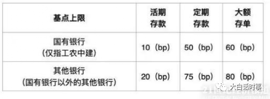 比如说,国有四大行大额存单的利率上限为“60基点”,中小银行的利率上限为“80基点”。