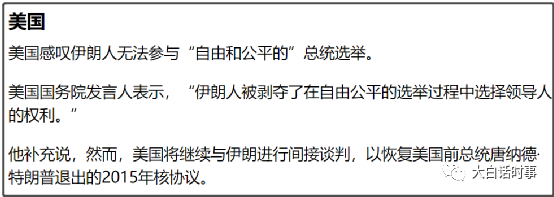 当然,一些敌视伊朗的国家,自然大肆攻击伊朗选举不透明之类的,但其实以当前伊朗的国内氛围看,随便怎么选,都不太可能出现温和派胜利的情况。