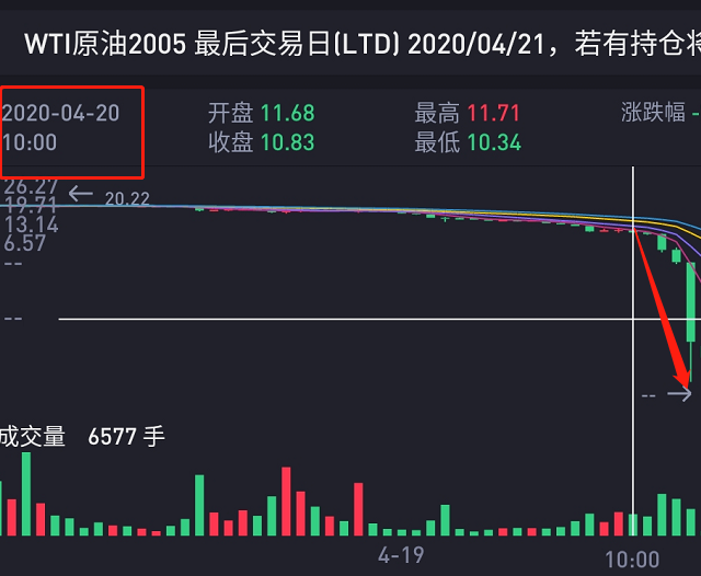 而在10点之后,石油价格就开始暴跌,连续跌破了10美元、5美元、1美元,乃至最后跌到了负40美元,而最终收盘于负37美元。
