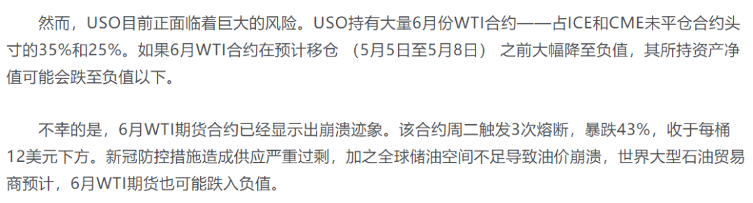 比如说,全球最大的石油ETF基金美国的USO基金是在4月14日之前就移仓了。