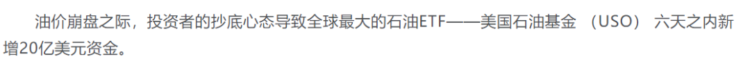 过去一礼拜,全球最大的石油基金,美国石油基金USO,一共流入了新增资金20亿美元。