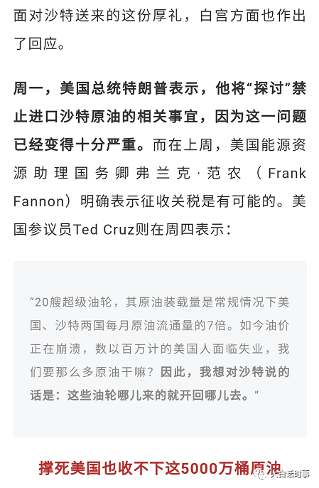 自然是把禁止进口沙特原油,包括加收高额关shui又拿出来说。