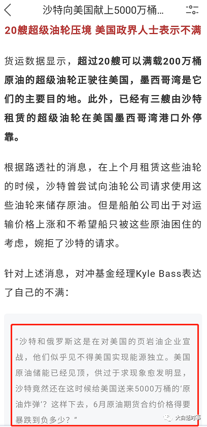 根据国外媒体报道,在美国本土储油空间马上耗尽的情况下,沙特居然动用了20艘超级油轮,满载着5000万桶原油,前往墨西哥湾。