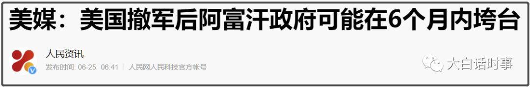 在6月25日,美国情报部门仍然预测,阿富汗政府可能在6个月内垮台,言下之意就是还能撑6个月。