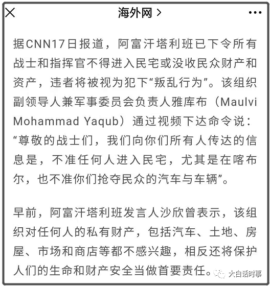 包括我昨天文章里也有提到过的,塔利班在拿下喀布尔后,就第一时间做出13项承诺。