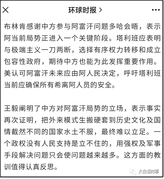 今天美国国务卿布林肯还专门打电话给我们,这次电话的主要议题就是阿富汗局势,很显然,这是美国又跑来找我们要寻求帮忙了。