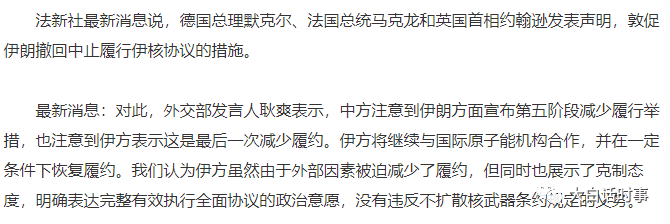 有意思的是,伊朗宣布中止履行伊核协议后,各方表态不尽相同。
