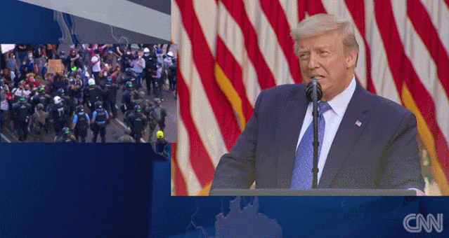 而在这样的电视讲话里,他将当前美国全国范围内的暴力骚乱定义为“国内恐怖主义”,然后声称要触动美国军队镇压。