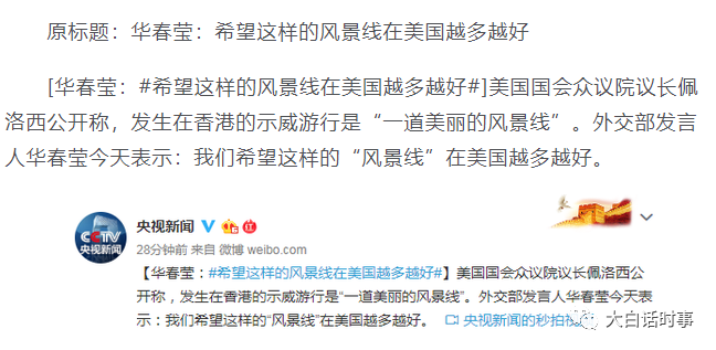 去年8月份,美国佩洛西也曾经把暴徒的种种恶劣行为,称之为“美丽的风景线”。