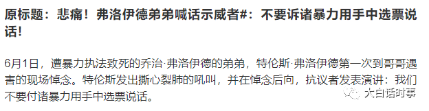 甚至像弗洛伊德的弟弟,居然还像示威者喊话说要寄希望于自己手中的选票。