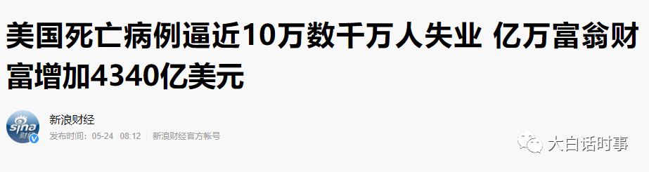 而无限印钞更多的钱,却是流入股市里,把本来崩溃的美股给救了回来,那些主要依靠股市支撑财富的亿万富翁,自然一个个又身价倍增。