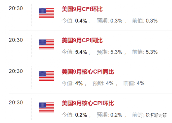 今天晚上8点半,美国公布了最新的9月份CPI数据,是同比增长5.4%,高于市场预期的5.3%,比上个月小幅增长。
