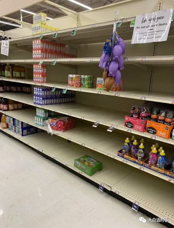 目前欧美一些超市已经出现这样货架摆不满的情况。