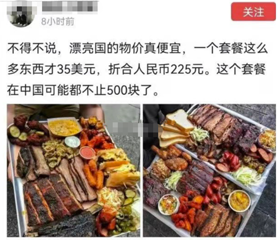有人最后扒出来,被这群“美分”使用的图片,是英国的一家烤肉店的广告,这一份250英镑,相当于2000多人民币,结果被他们偷梁换柱说只要几十美元。